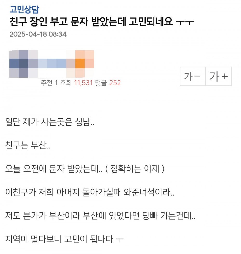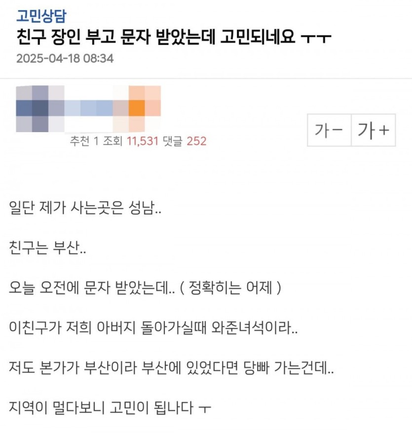 친구 장인 부고 문자 받았는데 고민되네요 ㅜㅜ