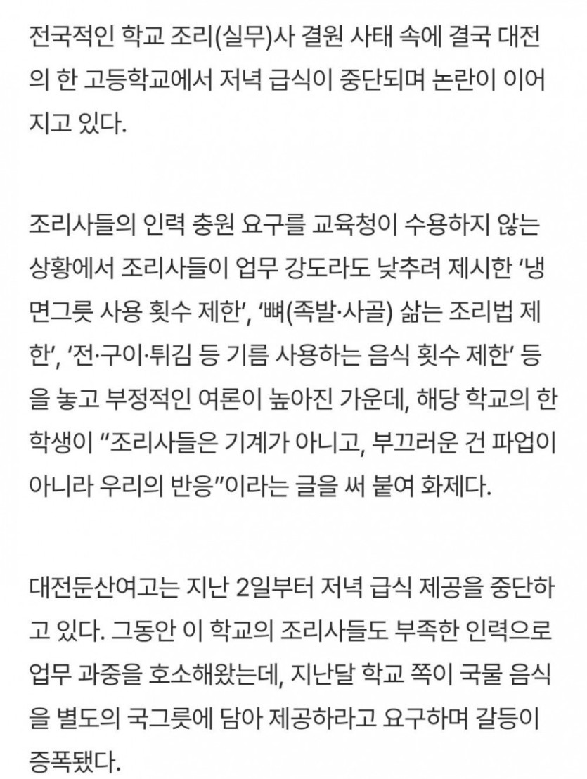‘급식중단’ 대전 여고생의 소신 발언