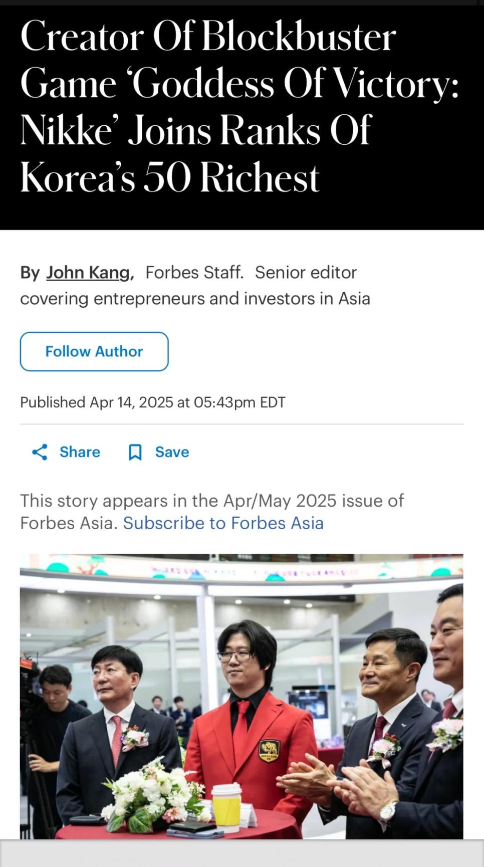 포브스 선정 국내 부자 50위 내에 진입한 인물 rh1 0 133 0 2025.04.18 15:15 https://www.forbes.com/sites/johnkang/2025/04/14/creator-of-blockbuster-game-goddess-of-victory-nikke-joins-ranks-of-koreas-50-richest/키무라 횬타이 0