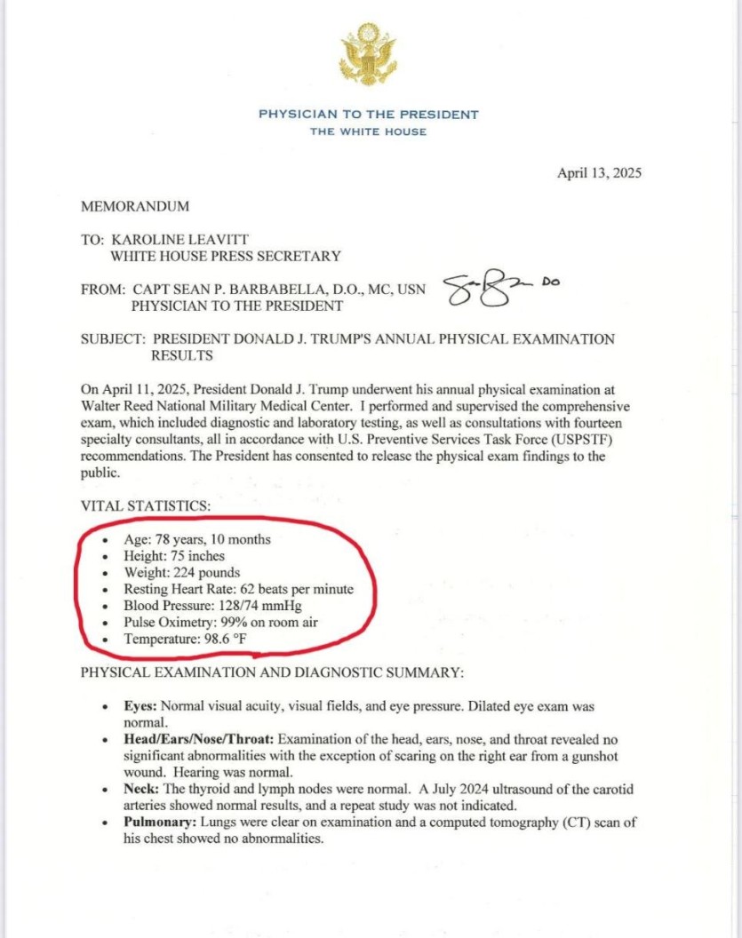 오늘 나온 트럼프 건강검진 근황