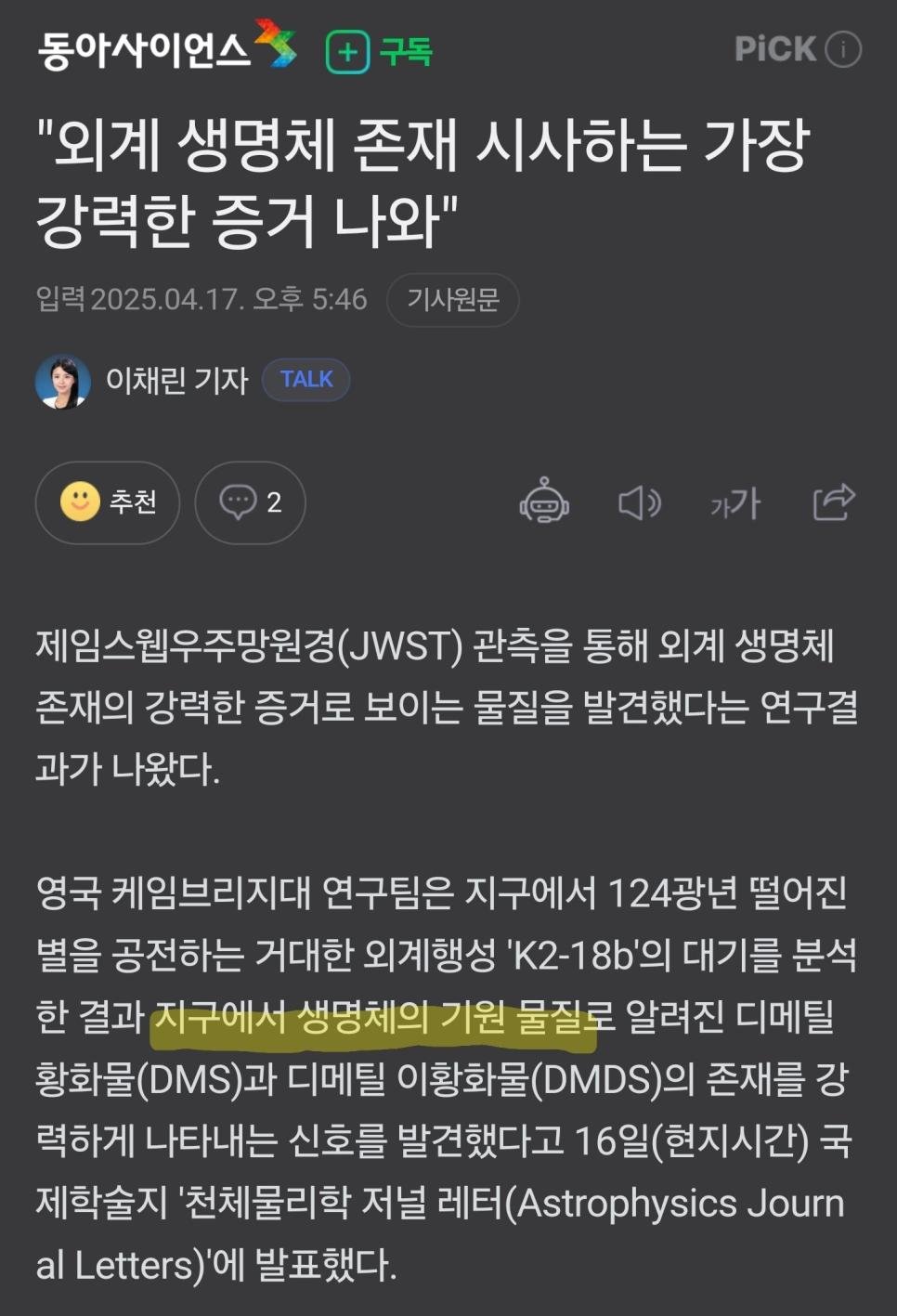 태양계밖 외계생명체 증거발견.jpe