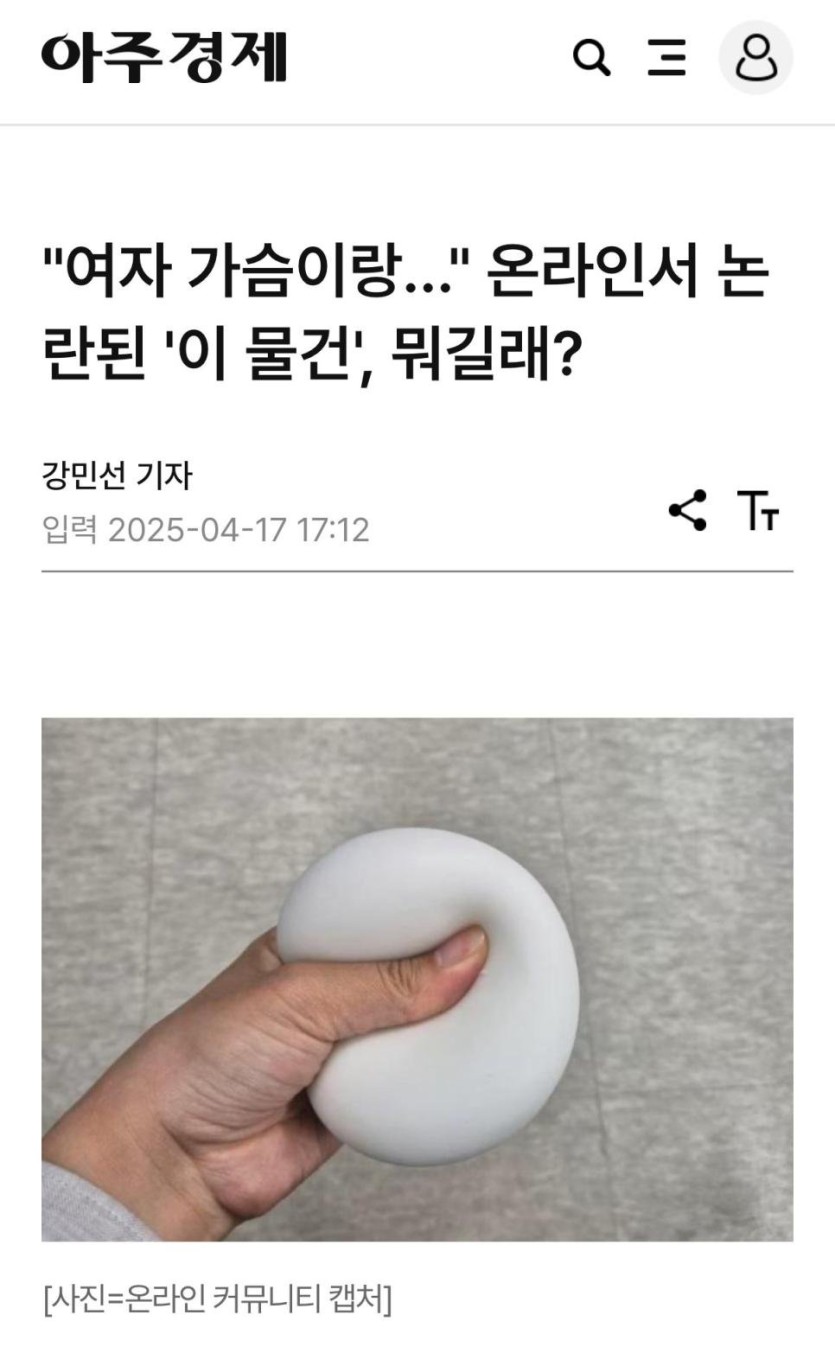 "여자 가슴이랑..." 온라인서 논란된 '이 물건', 뭐길래? rh1 0 99 0 2025.04.17 21:15 https://www.ajunews.com/view/20250417161410679유게 변태들 이거 사려고 예약금 걸고 왔을듯 0