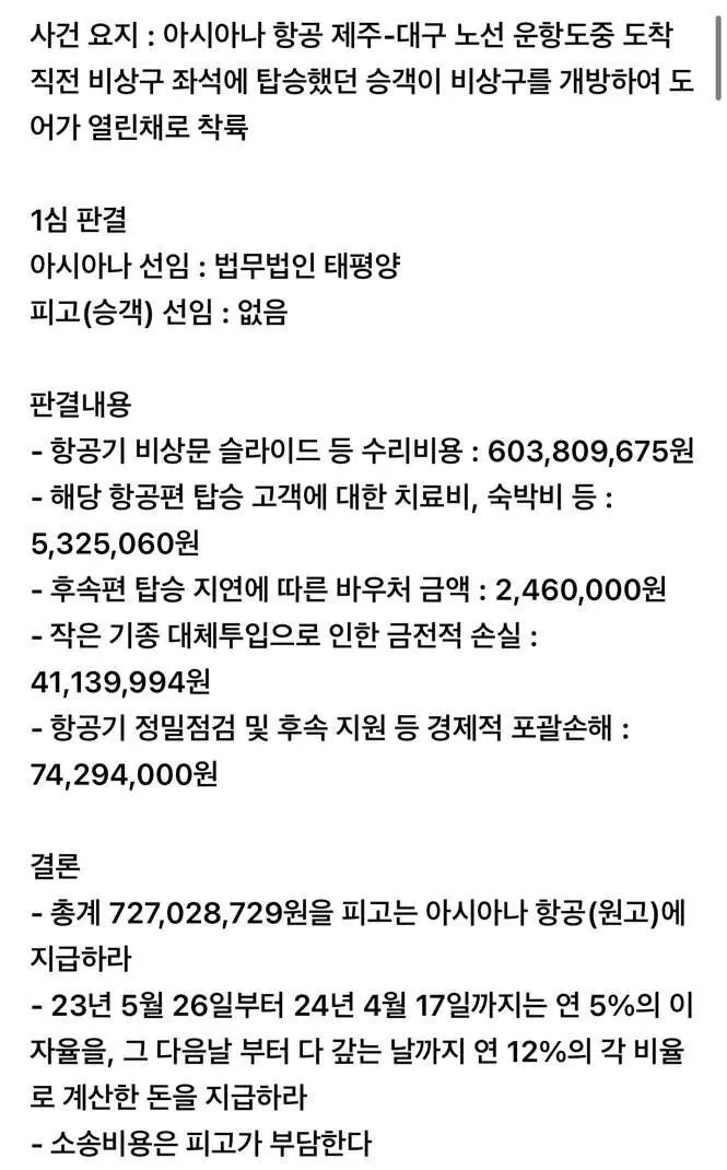 아시아나 항공 비행기 개문 사고 판결 근황..jpg