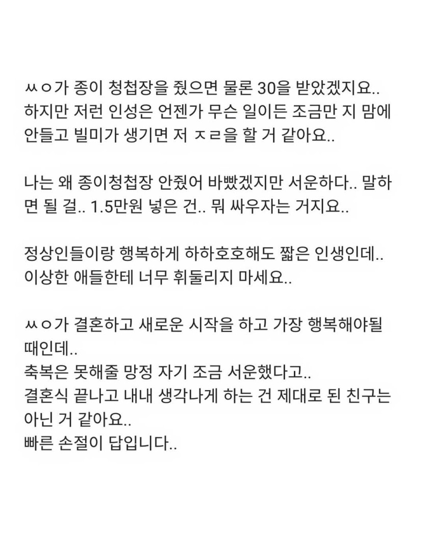 그냥 축의금 안 줄 빌미를 찾은것 같은데?