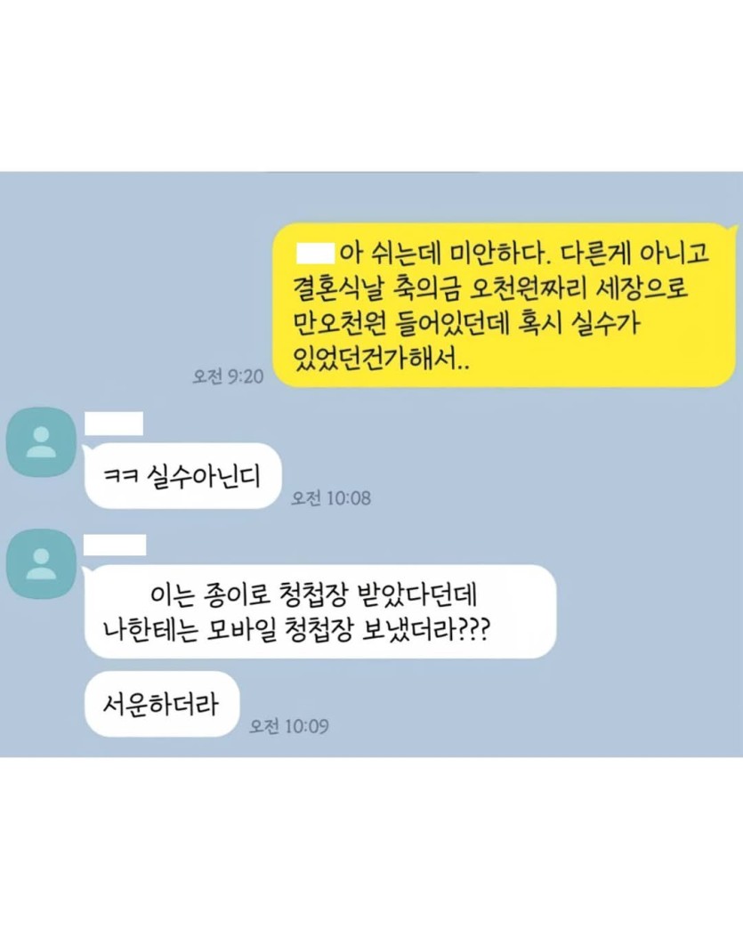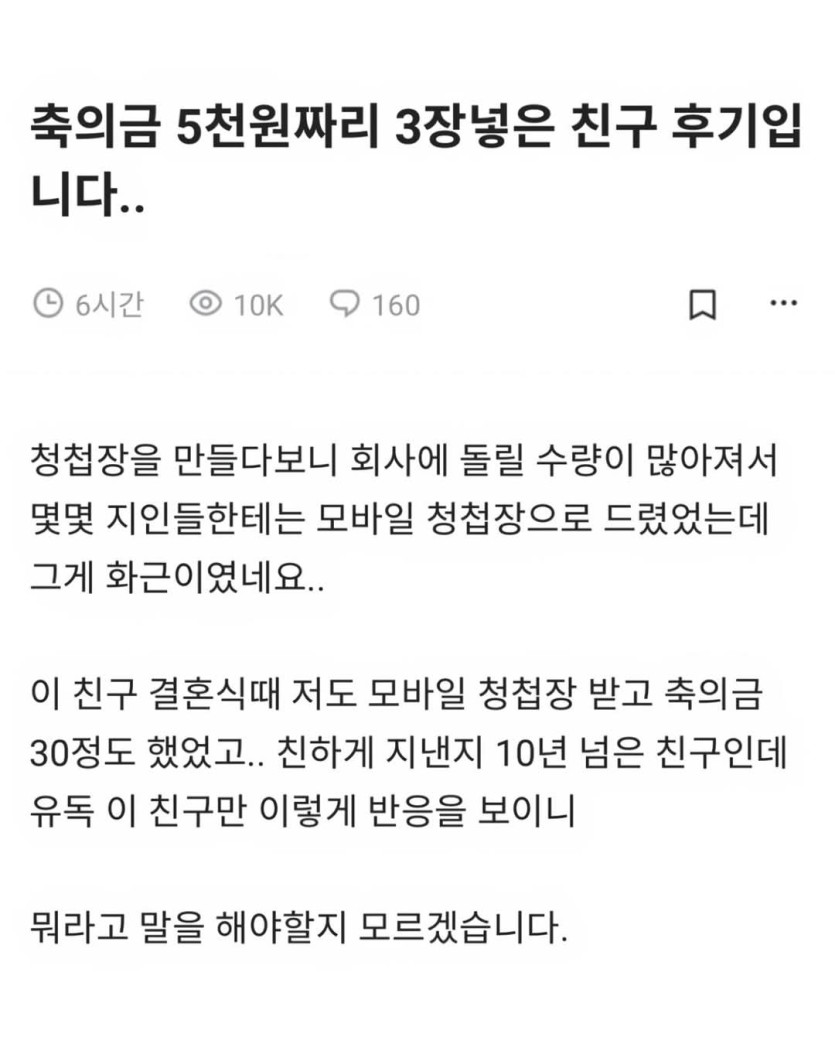 ) 결혼 축의금에 5천원 짜리 3장 넣은 친구