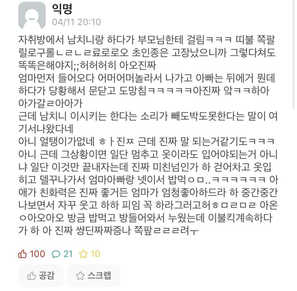 남친이랑 야스하다 부모님한테 걸린 에타인