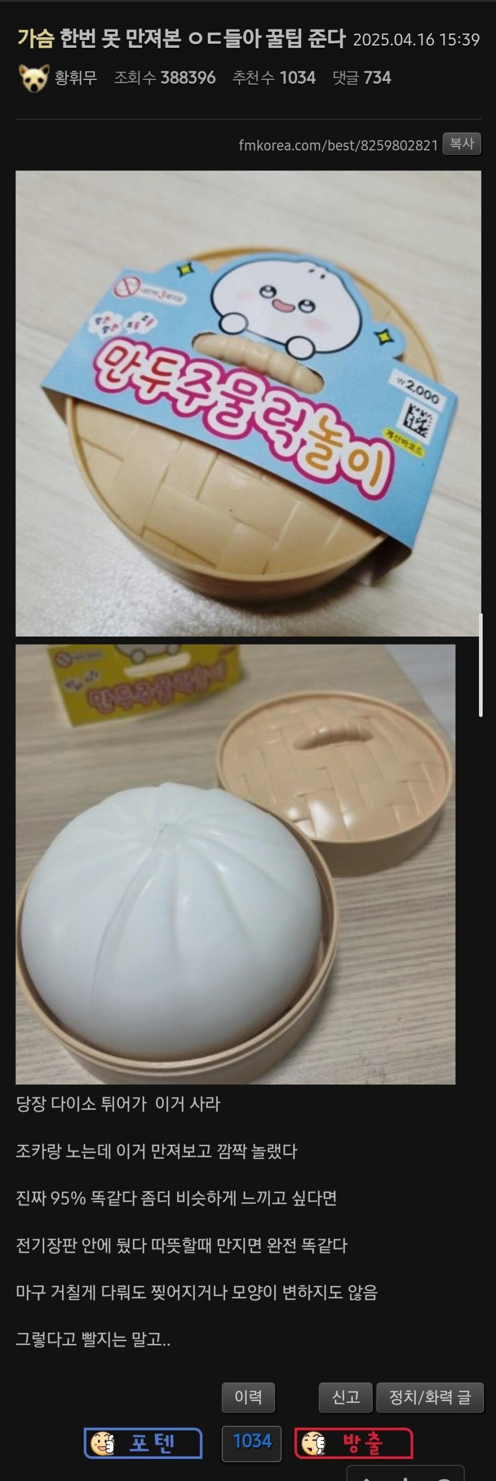아다를 위한 가슴 만지는거 대리만족 다이소 "만두" 품절 대란.jpg