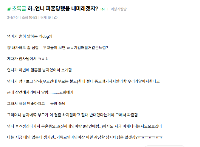 하.. 언니 파혼당했는데 내 미래겠지?
