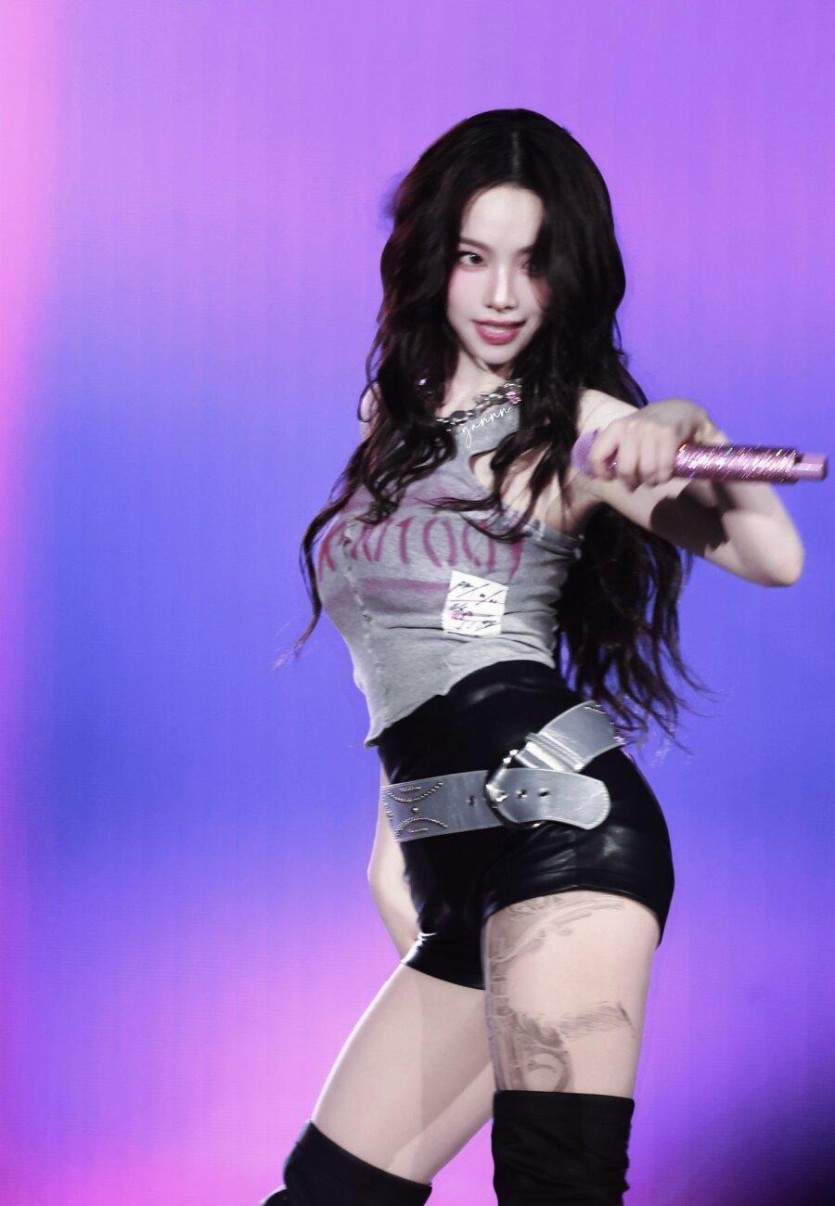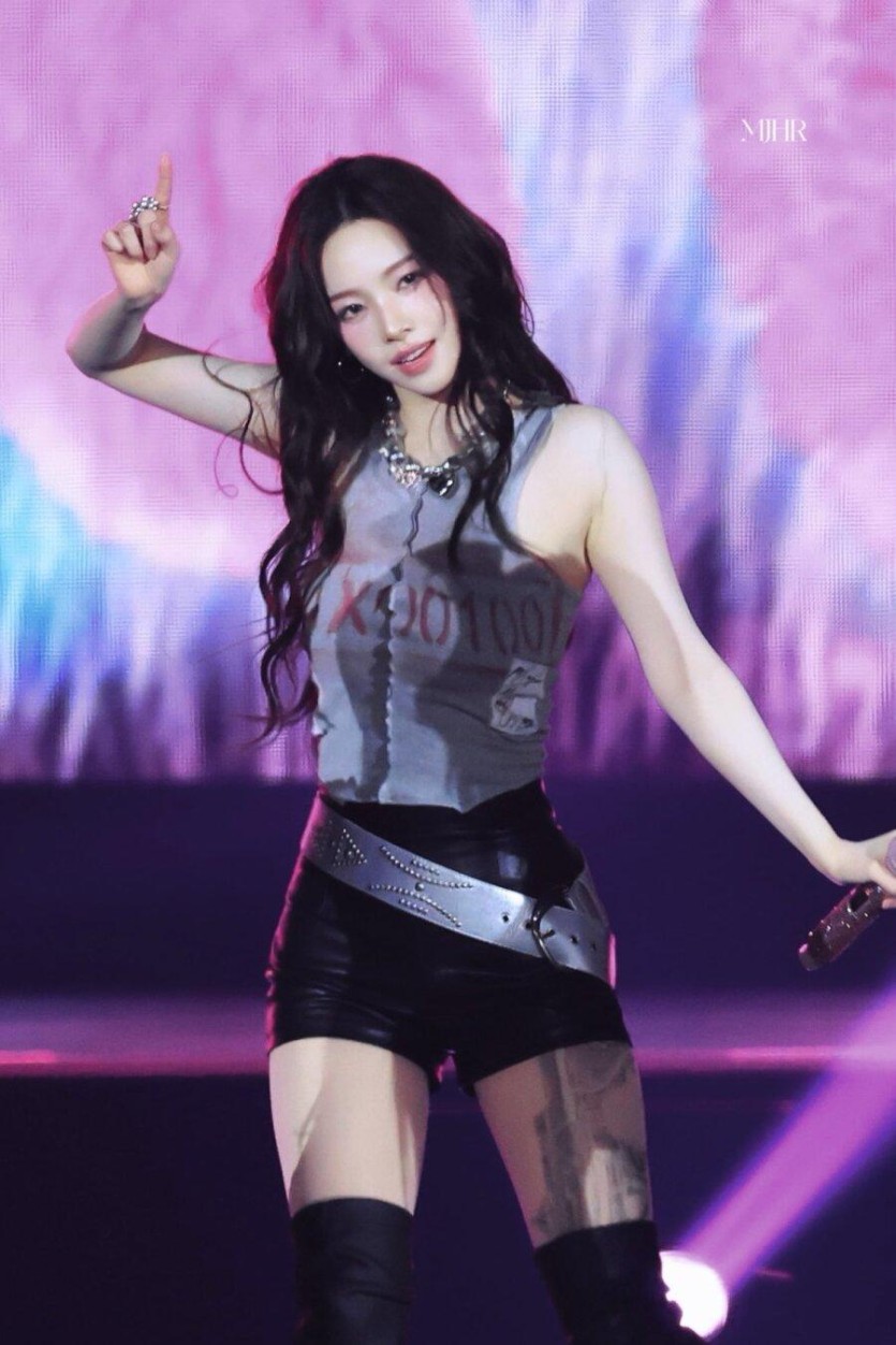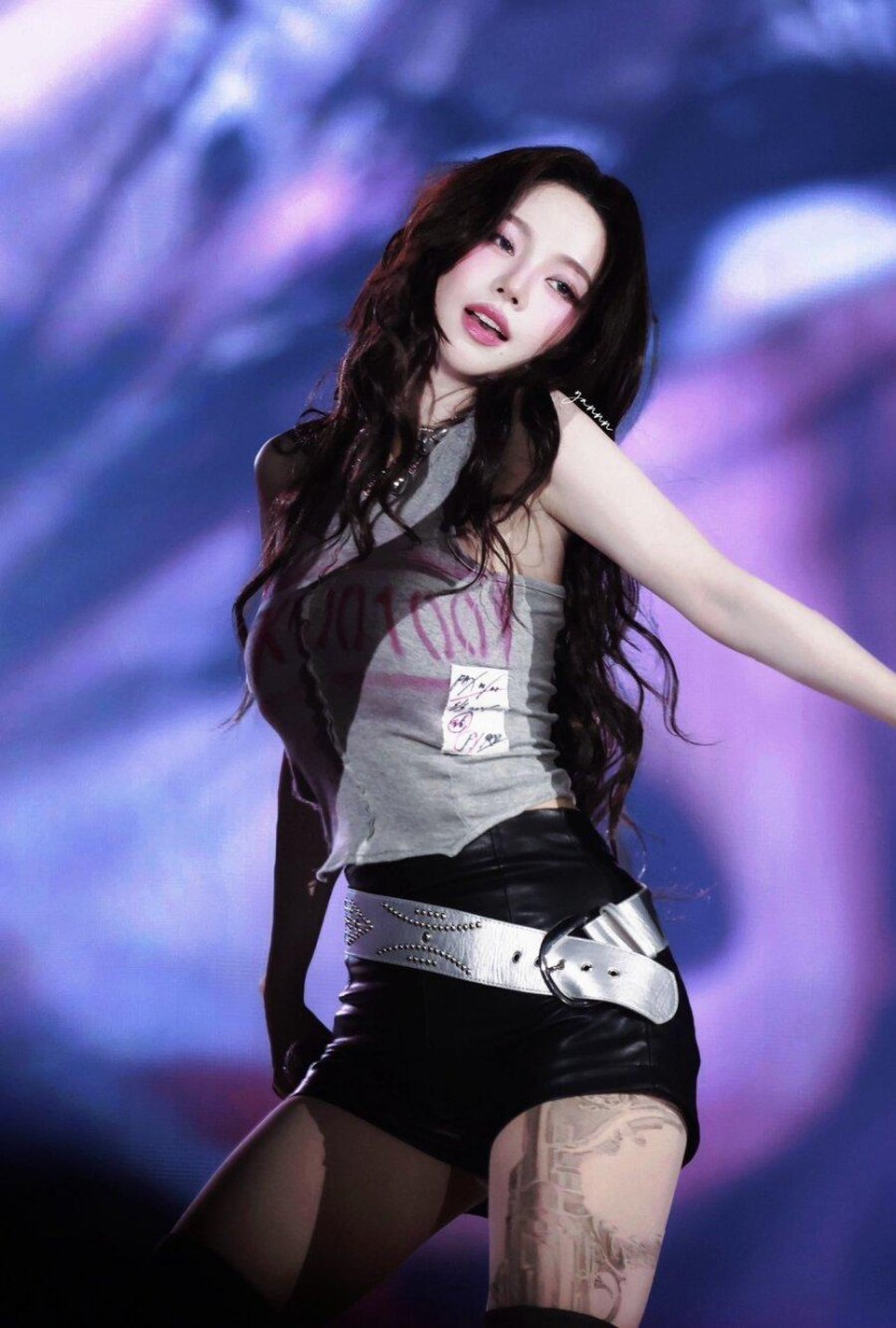 에스파 카리나 특이하고 섹시한 무늬 스타킹