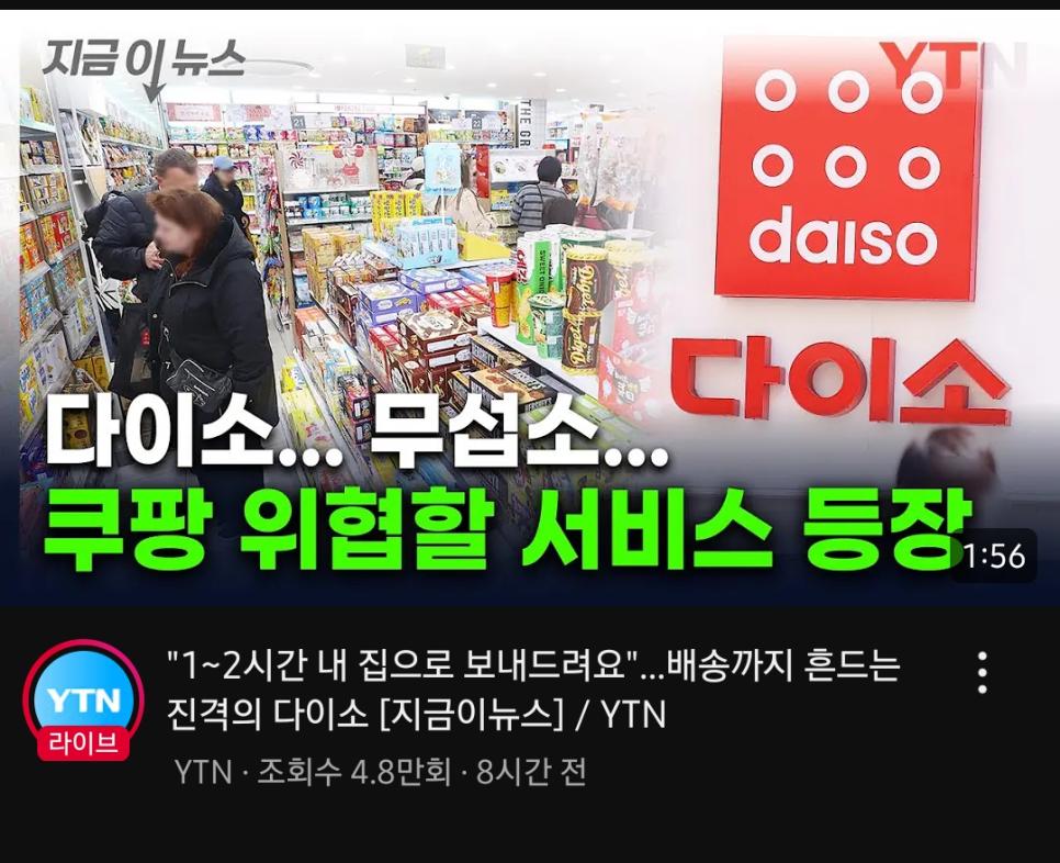 다이소, 모두가 기다려온 "그 서비스" 드디어 등장... rh1 0 110 0 2025.04.16 22:00 - 1만원 이상 주문 가능- 배달비 5천원- 4만원 이상 구매시 배달비 무료- 요즘 많이들 하는 올리브영 퀵 주문(1시간정도 뒤에 집에 도착함) 과 비슷한 형태인듯 0