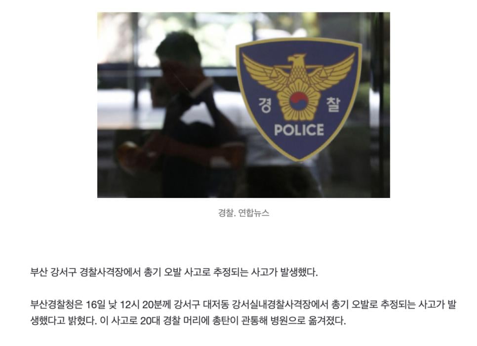 부산 경찰. 사격장에서 오발사고 머리 관통