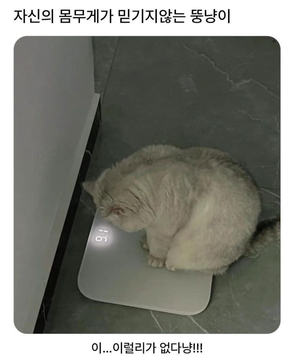 몸무게 보고 놀란 고양이