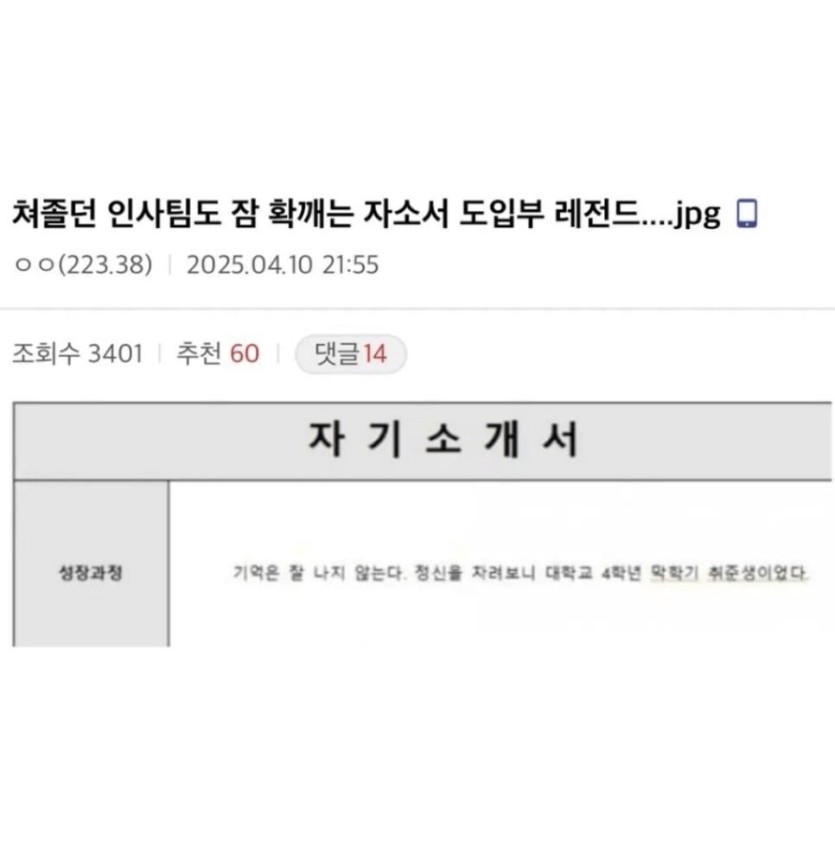 인사팀도 잠 확 깨는 자소서 도입부 레전드.jpg