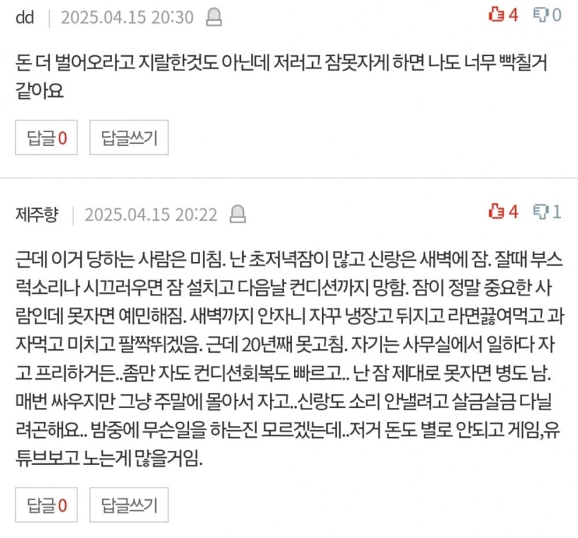 새벽에 야식먹느라 시끄럽게 하는 남편