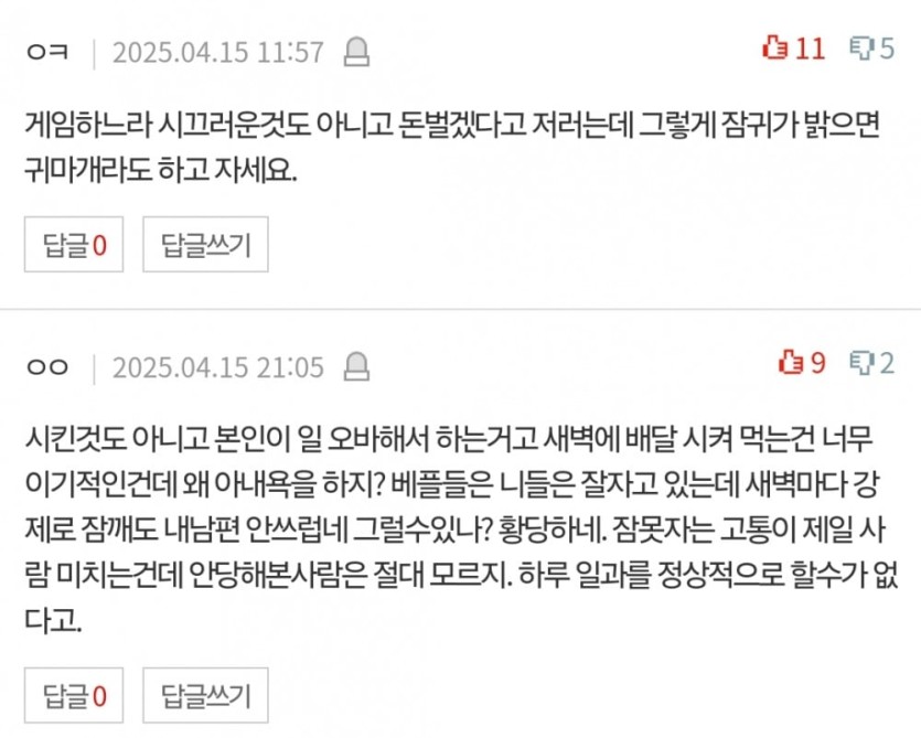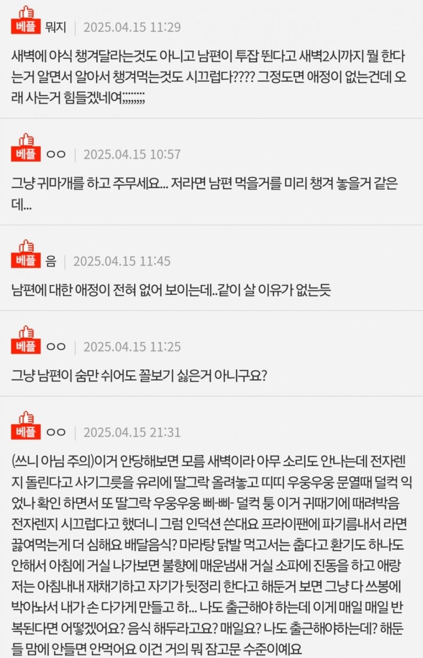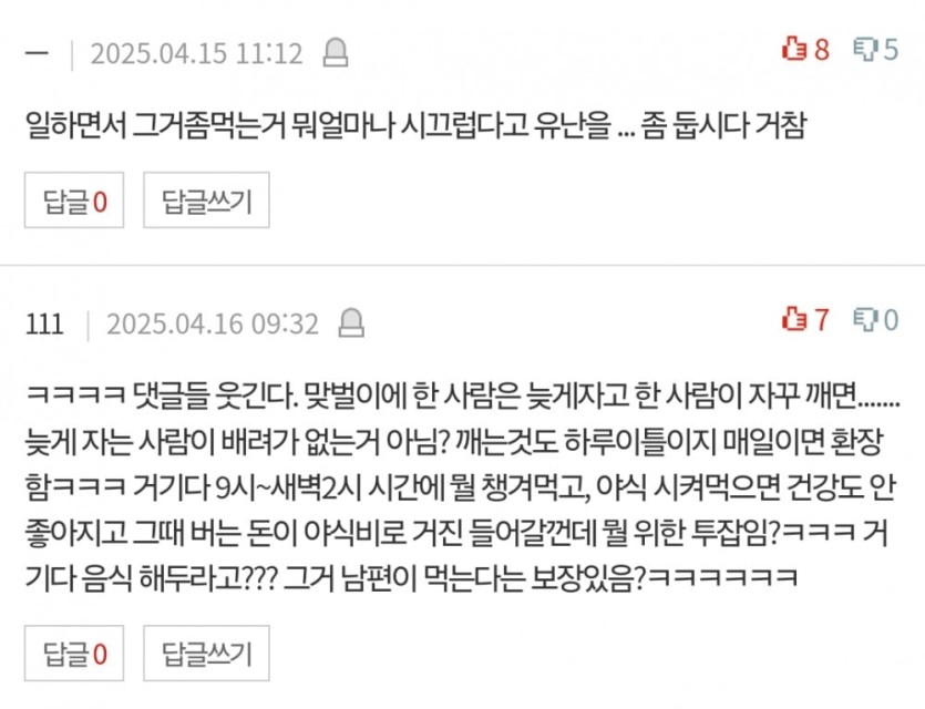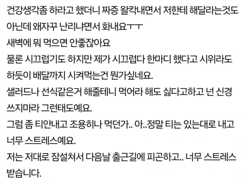 새벽에 야식먹느라 시끄럽게 하는 남편