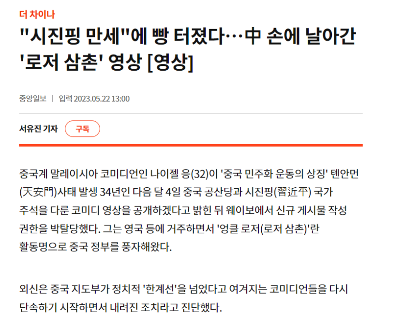 중국 조롱한 말레이시아 화교 유튜버의 최후