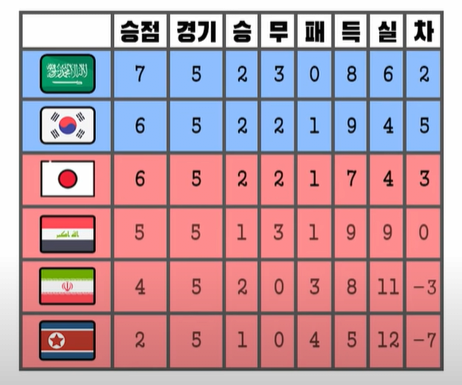 한국이 일본을 누르고 월드컵 본선에 진출하게 된다