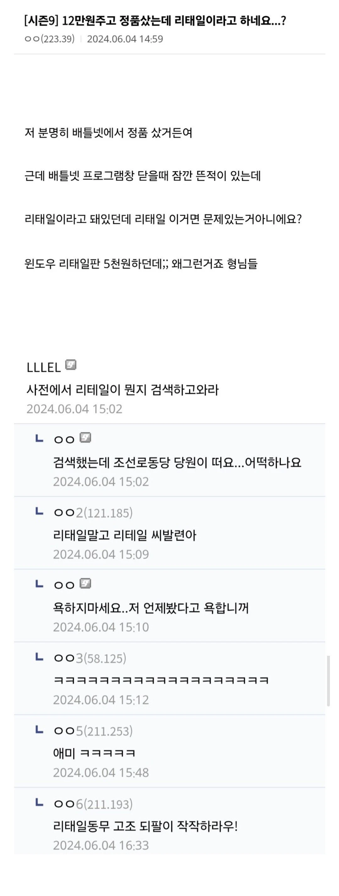 12만원 주고 정품 샀는데 리태일이라고 하네요?.jpg