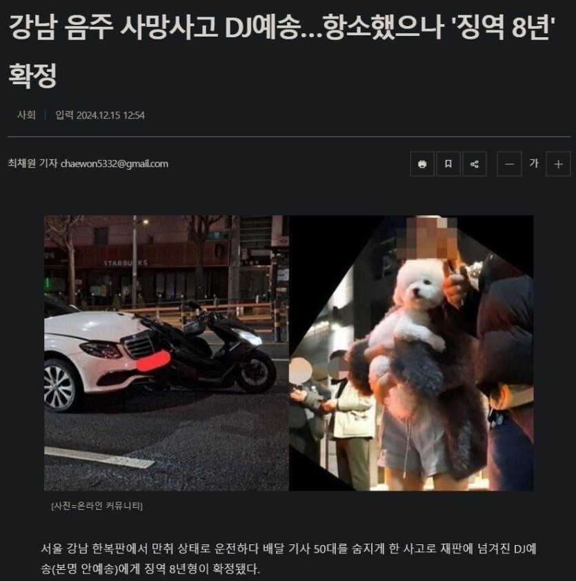 음주 사망사고낸 DJ예송 징역8년