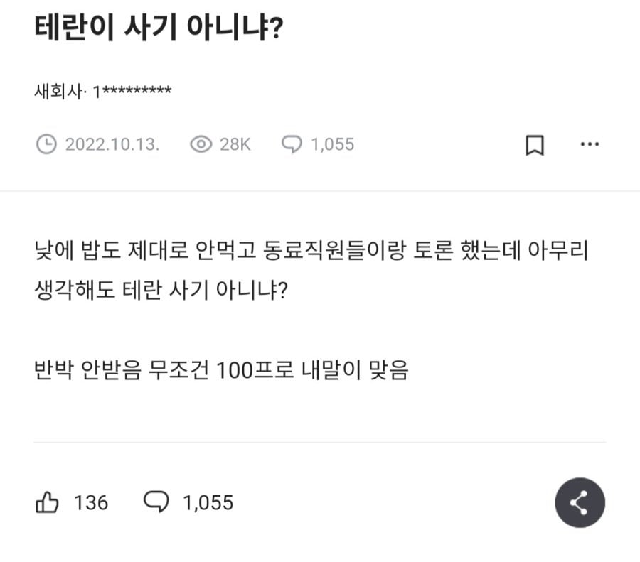 블라인드 사이트에서 댓글 1000개가 넘어간 논쟁 . JPG