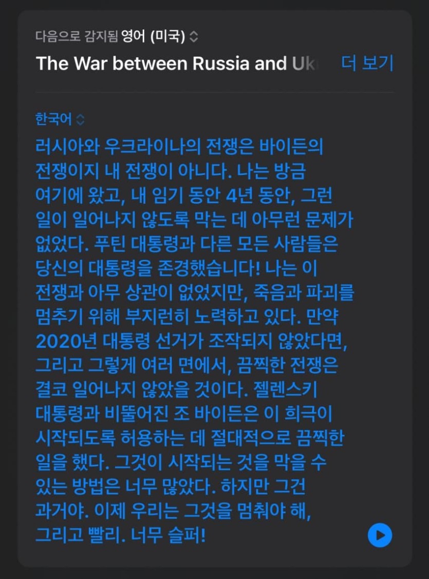 트럼프 "우러전쟁 그딴거 내 알바 아니다."