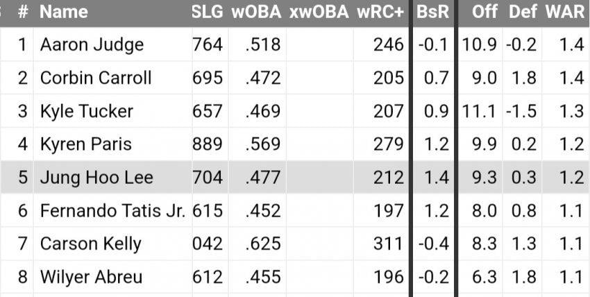 이정후 메이저리그 타자 TOP 5 진입 ㄷㄷㄷ