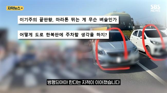도로 한가운데 주차하고 마라톤 뛴 사람들 ㄷ.jpg