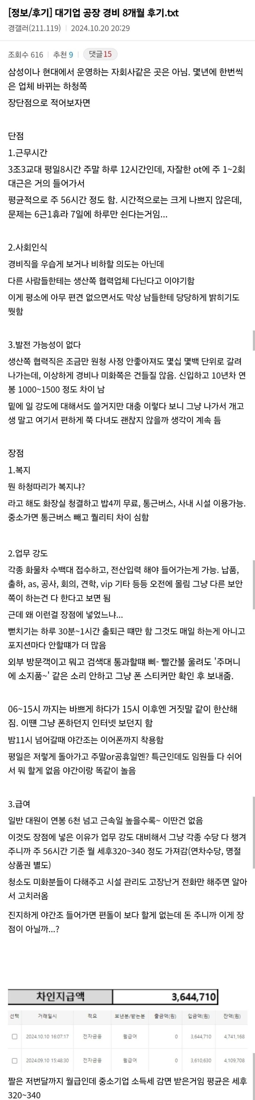 대기업 공장 경비 8개월 후기.txt