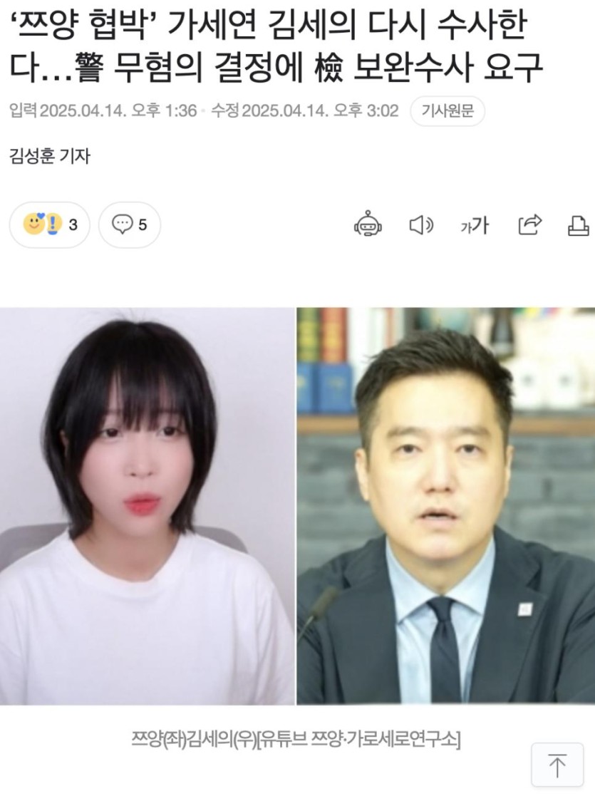 쯔양 협박, 경찰은 고소취소? 검찰은 보완수사 요구