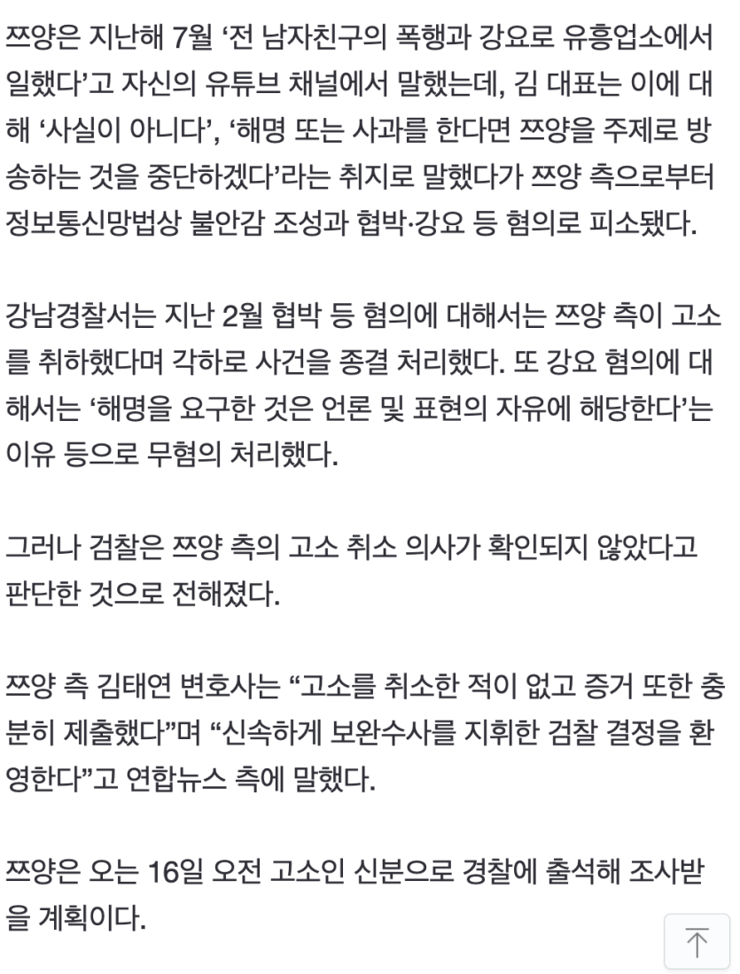 쯔양 협박, 경찰은 고소취소? 검찰은 보완수사 요구