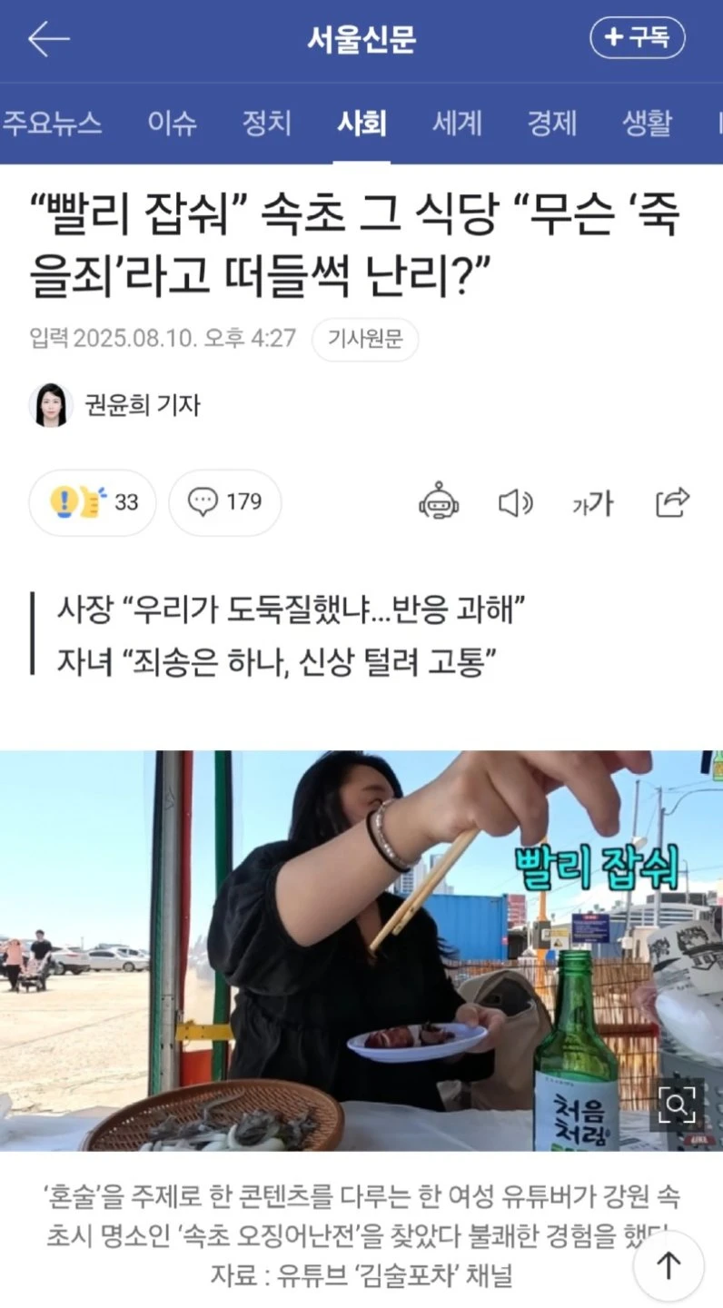 식당: 솔직히 속초 오징어난전 사장이 죽을죄를 짐?