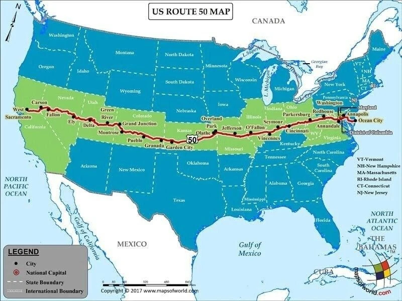 미국 본토를 가로지르는 어마무시한 길이를 자랑하는 50번 국도