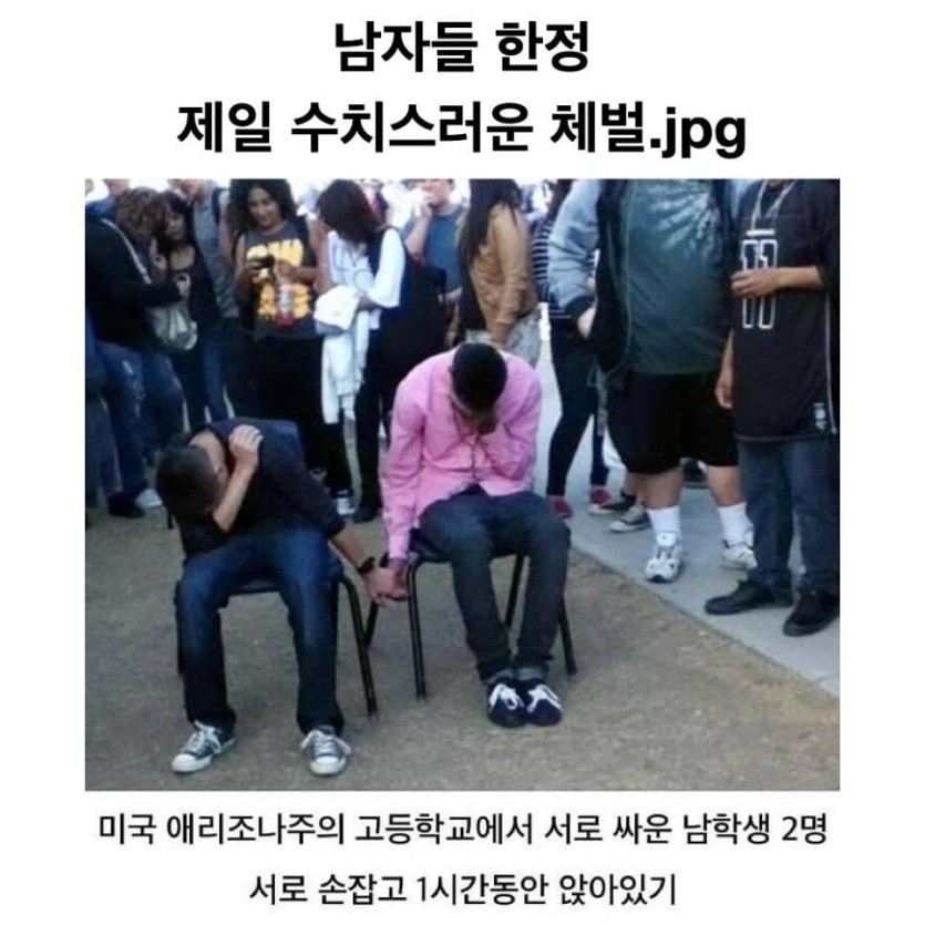 남자들이 학교에서 싸웠을때 받을 수 있는 가장 센 처벌