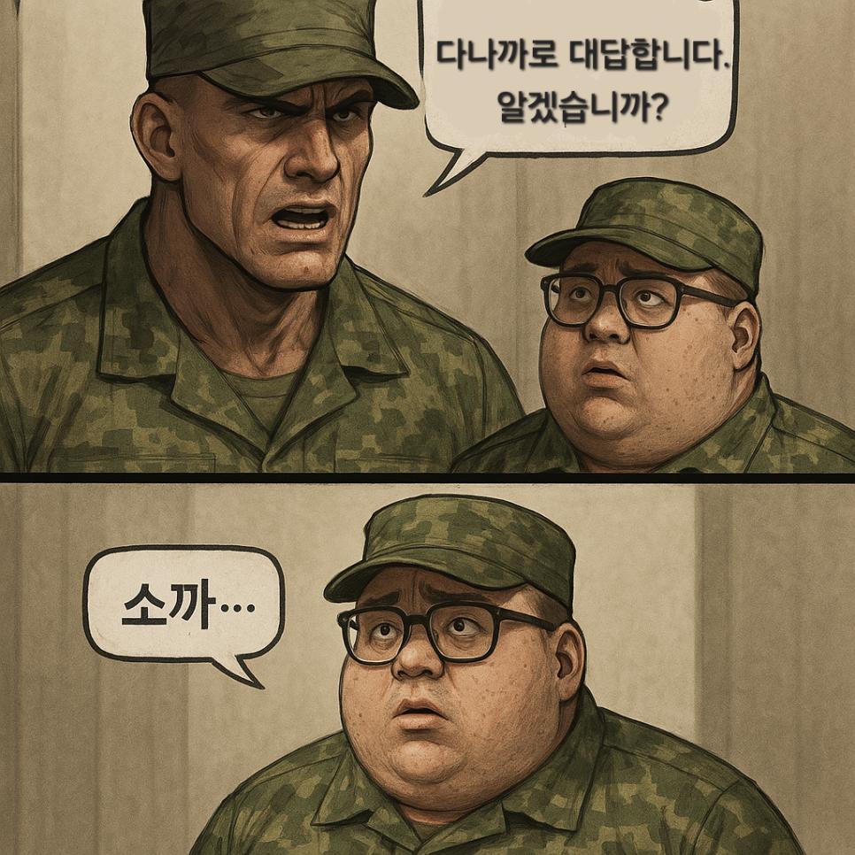 "군대에선 다나까로 대답합니다. 알겠습니까?"