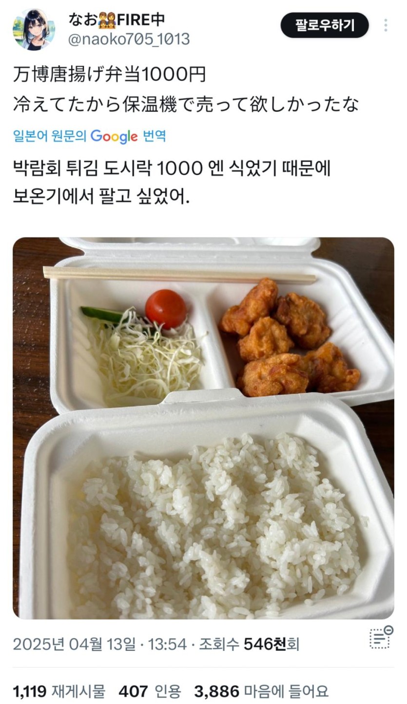 오사카 엑스포에서 판매하는 1000엔 가라아게 도시락