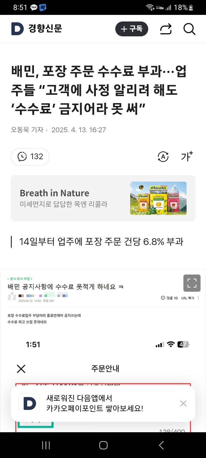 배민, 14일 포장 수수료 부과 시작
