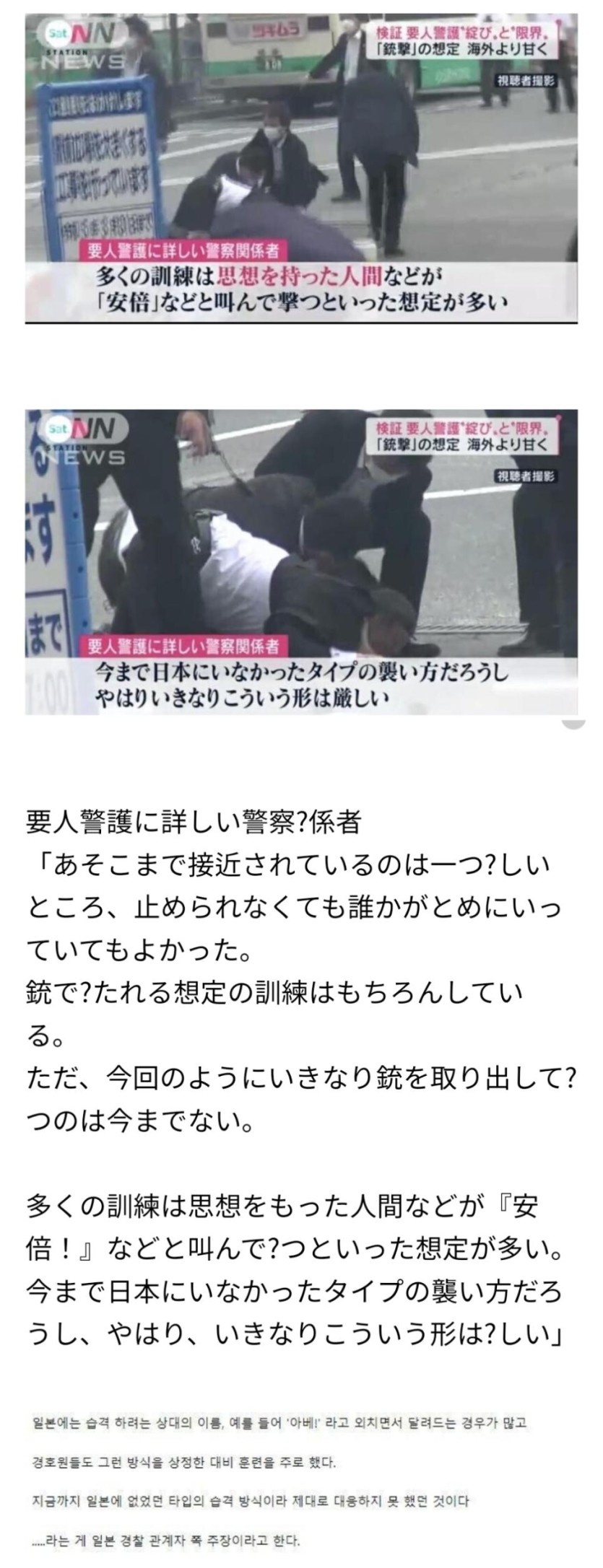 아베 암살 당시 경호원들이 아베를 지키지 않은 이유. jpg rh1 0 145 0 2025.04.14 11:30 일명 나노리 를 하지 않고 암살을 하는건일본인들에게 상상도 못하는 불?법 적인 일이여서 이게 정석 0