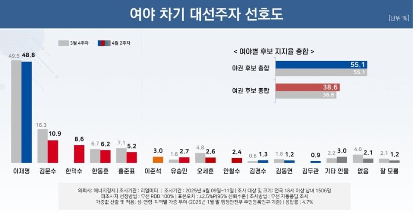 다자 48%~49% 양자 54% 박스권