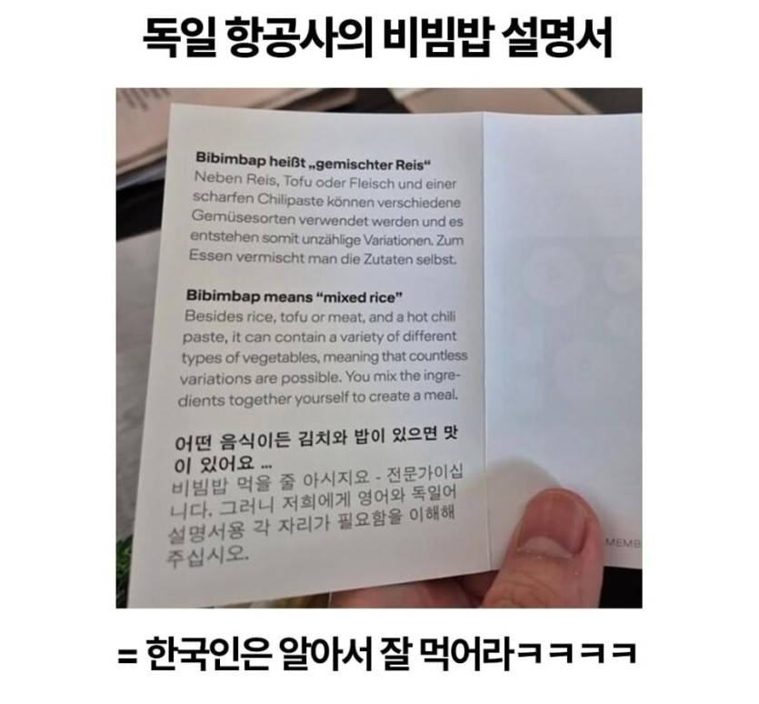 독일항공사 루프트한자의 비빔밥 설명서