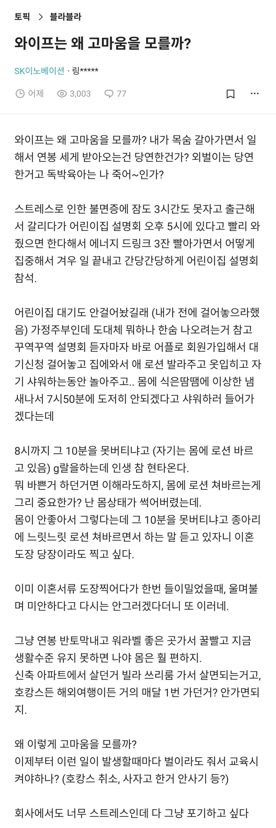 와이프는 왜 고마움을 모를까?