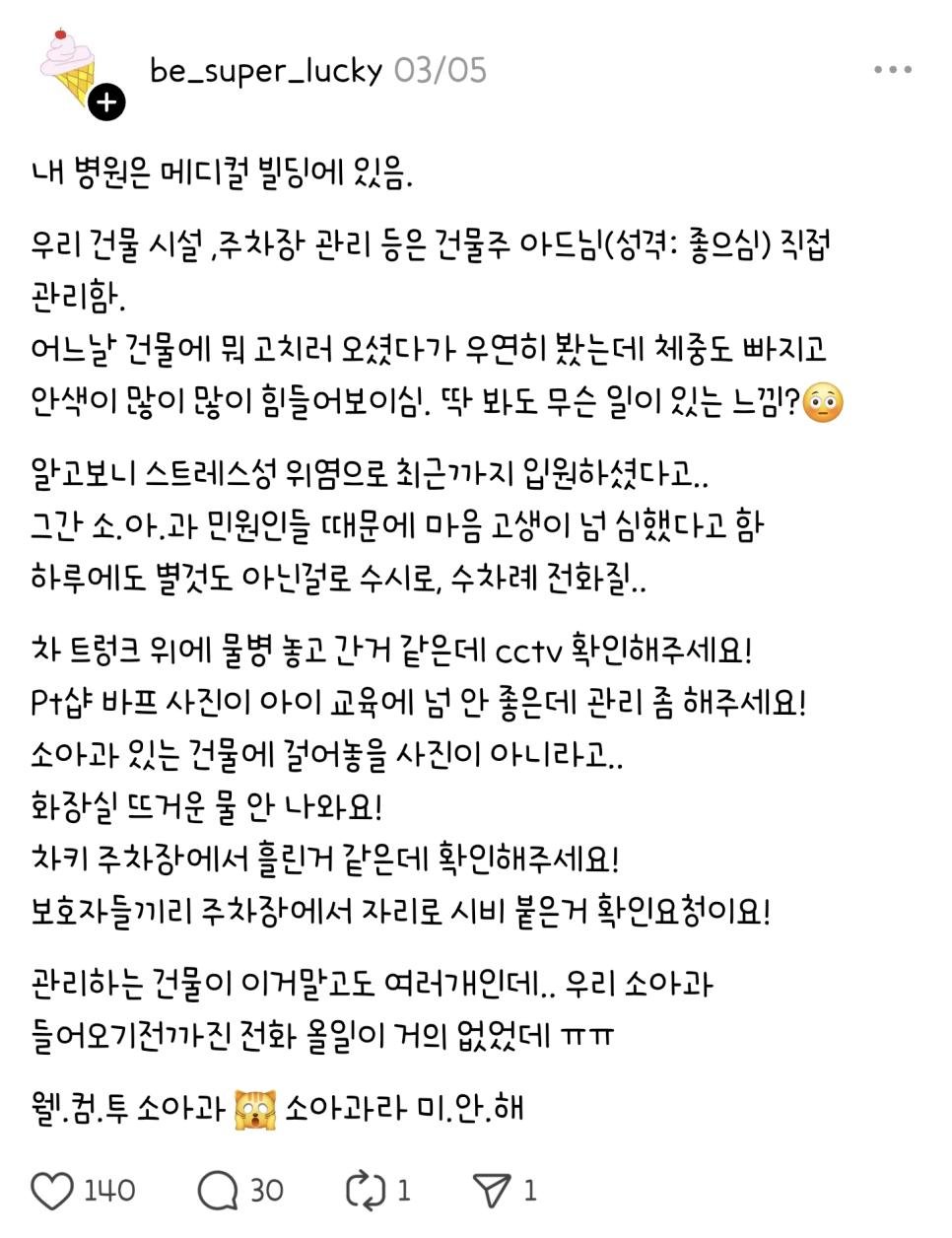 건물주한테 민원인들 심하다고 연락 받으신듯