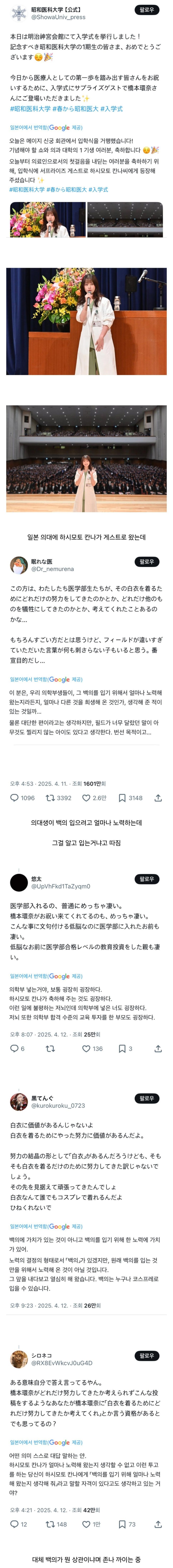 일본 의대에 게스트로 갔다가 욕 먹고 있다는 하시모토 칸나