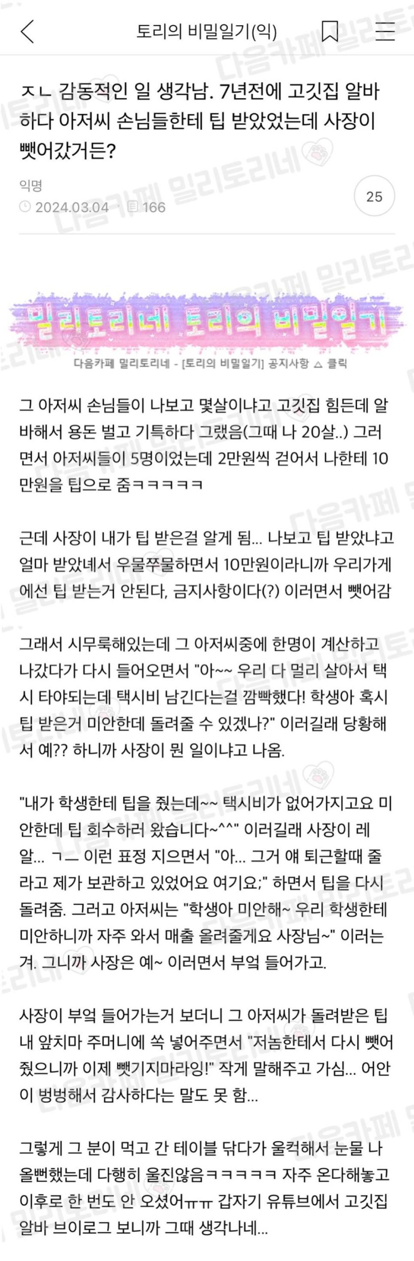 고깃집 알바하다손님들한테 팁 받았었는데 사장이 뺏어감.txt