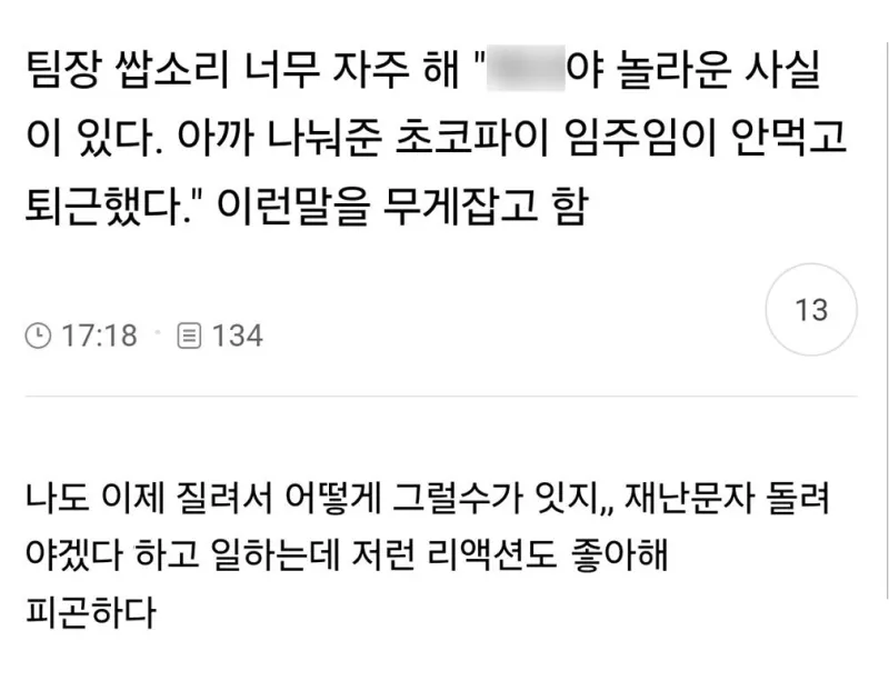 팀장님 버릇 잘못 들게한 직장인