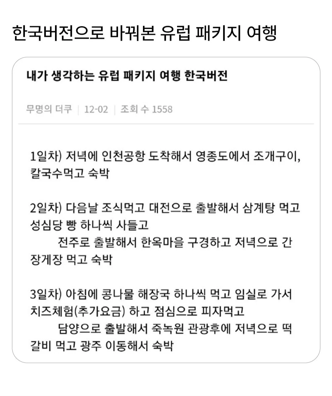 한국 버전으로 바꿔본 유럽 패키지 여행