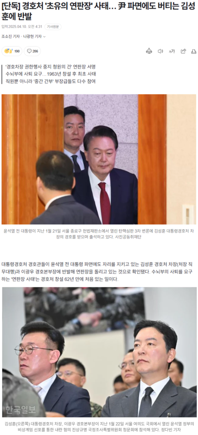 경호처 '초유의 연판장' 사태.. 尹 파면에도 버티는 김성훈에 반발