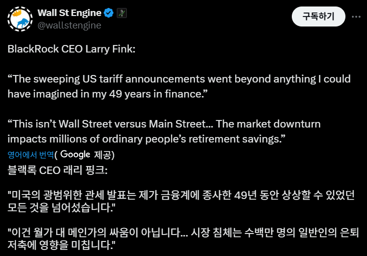 미국주식) 블랙록 CEO: 내 인생에 이런 장은 처음