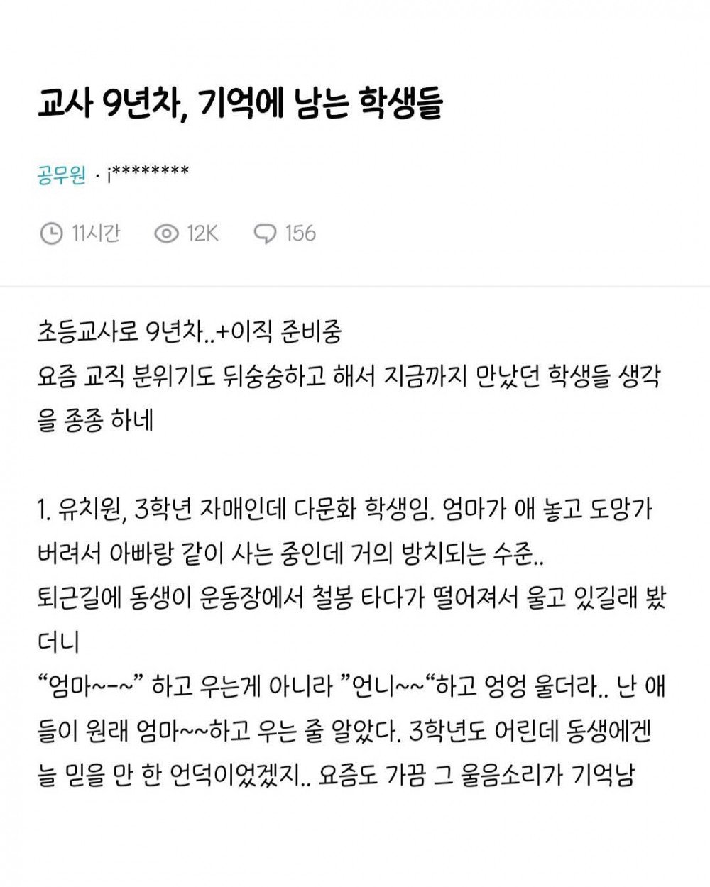 교사 9년차, 기억에 남는 학생들