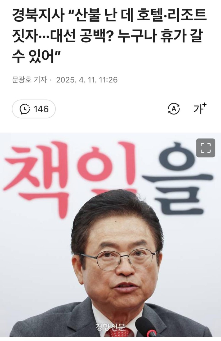 경북지사 “산불 지역 호텔 리조트 짓자”