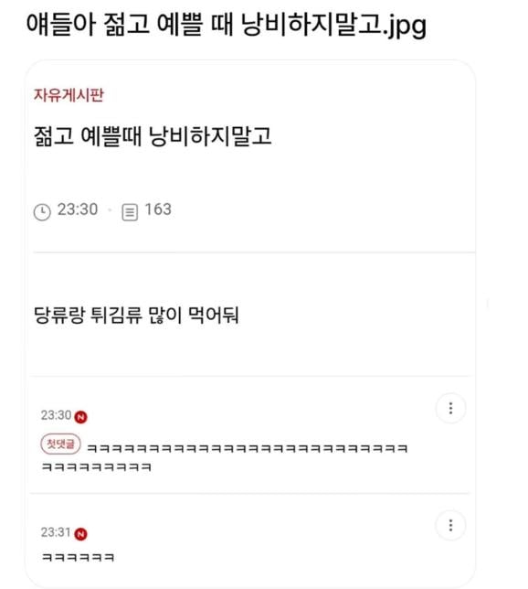 젊고 예쁠 때 낭비 말고 새겨들어 rh1 0 111 0 2025.04.11 18:00 https://www.bloody.co.kr/bbs/board.php?bo_table=free1&wr_id=954 0
